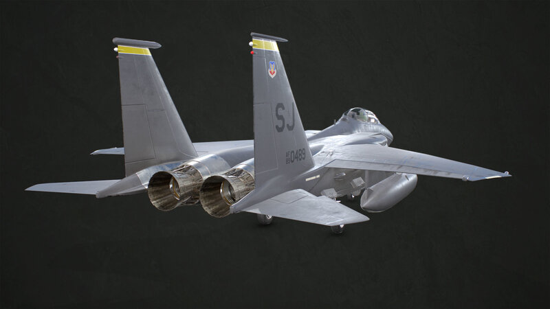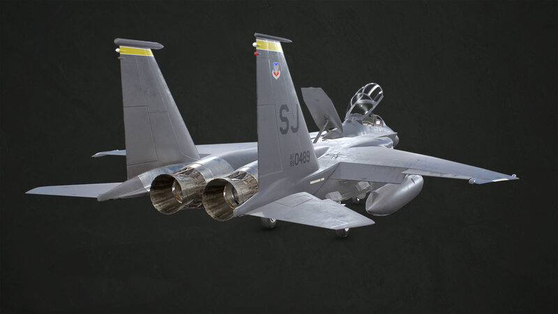 3D model of a McDonnell Douglas F-15E Strike Eagle with PBR textures. The model is low poly (39.931 Tris), game-ready and ready to animate (not animated):