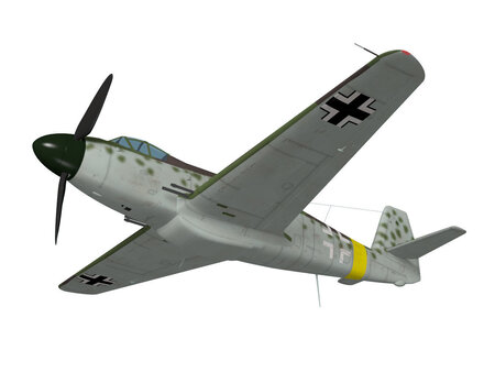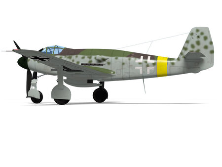 This fighter was planned based on the prototype me309 built by Messerschmitt during WW2. No real aircraft was built. The model's Landing gear is divided into flight and landing state parts.