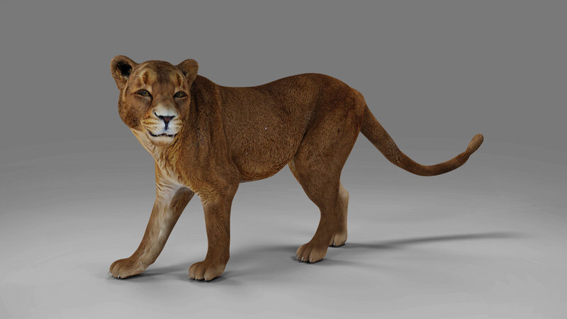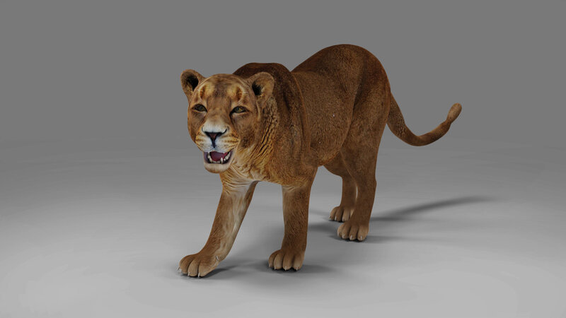 High quality realistic, rigged and Animated Lioness model
