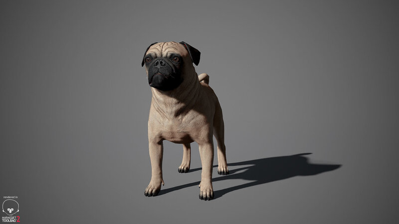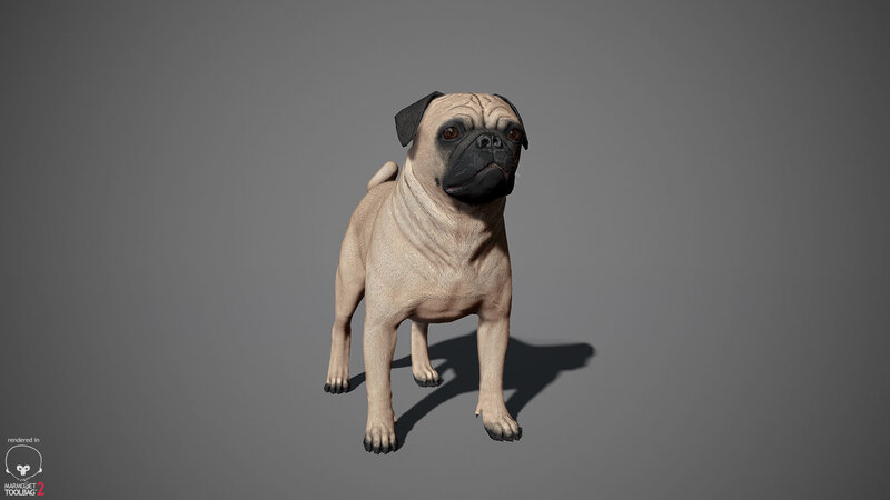 Realistic Pug Dog Real-Time Game-Ready 3D Model