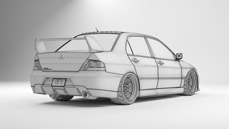 3D model of the Mitsubishi evo 9 with cosmis XT-006R wheels and toyo tires