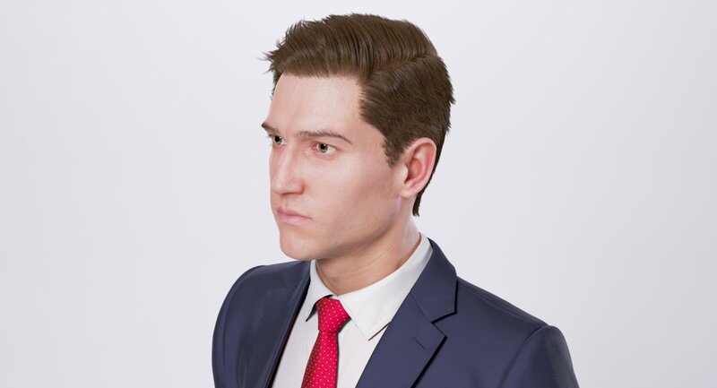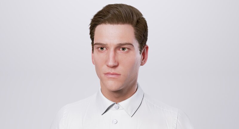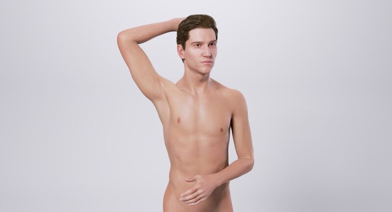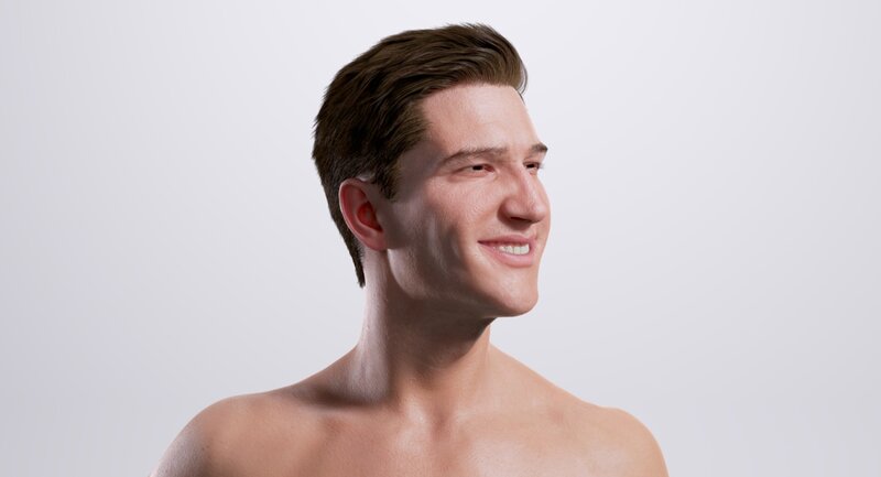 - Head hair, brows and eyelashes are based on ZBrush Fiber Mesh curves.