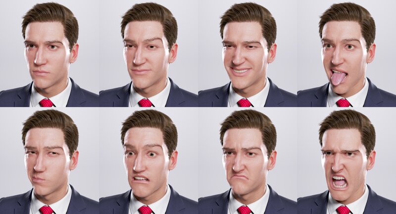 25 blend shapes facial expressions attributes and 11 phonemes.