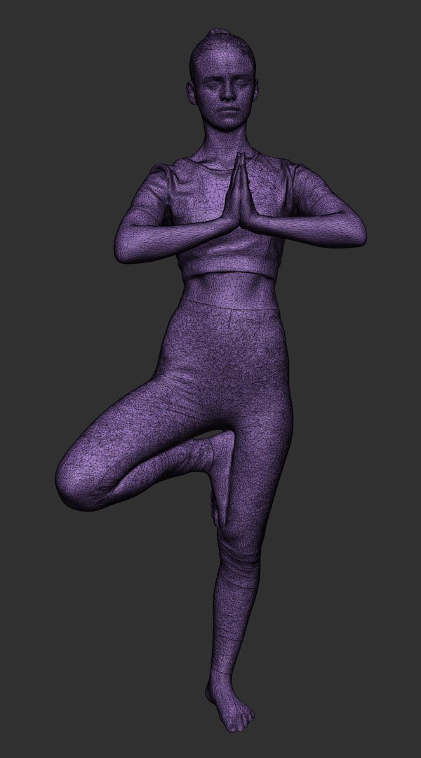 This is a true human size and detailed model of a sporty beautiful woman of Caucasian appearance dressed in sportswear. The model is captured in casual pose to be perfectly matching various architectural and product visualizations, as a background or mid-sized character on a sports ground, gym, beach, park, VR/AR content, etc.