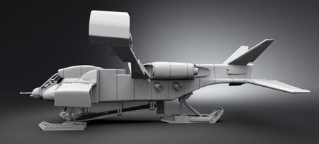 body, launcher, ramps, glass, landing gear separate Wings foldable and seperate. Missiles seperate.